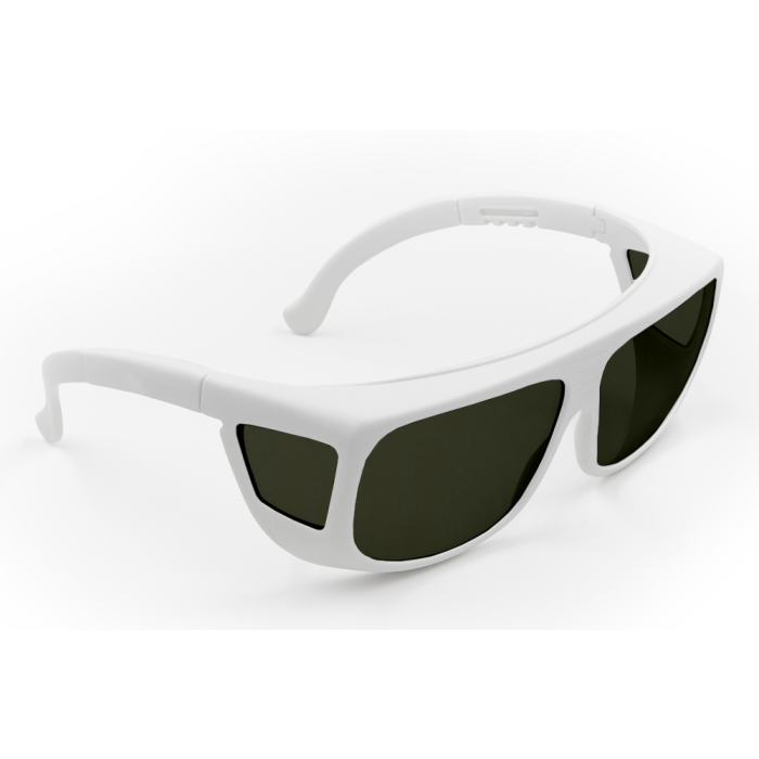 Modern universal style (medium); white frame; comfortable over Rx frames or alone; adjustable temples; soft touch nylon frame; full field of view; CE certified;